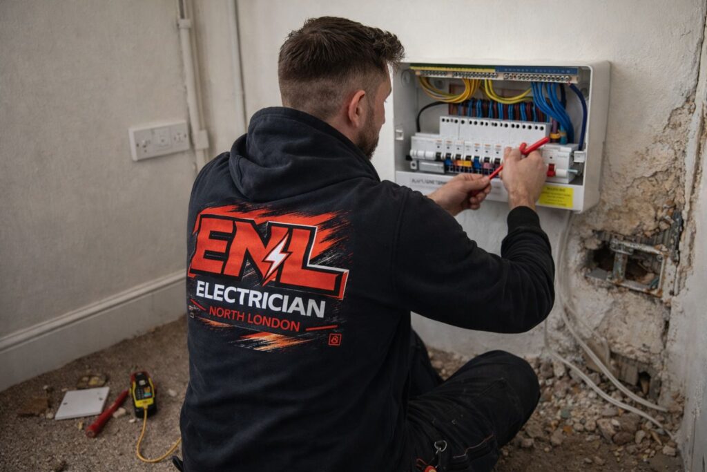 Ready to book or just want some advice? We’re always happy to chat through your requirements and give you an honest assessment of what’s needed. Call or message us today for a free, no-obligation quote. We cover all of North London — from Camden and Islington to Finchley, Highgate, Muswell Hill, and beyond. Whatever your electrical needs, we’re here to help. Safe. Reliable. Local.